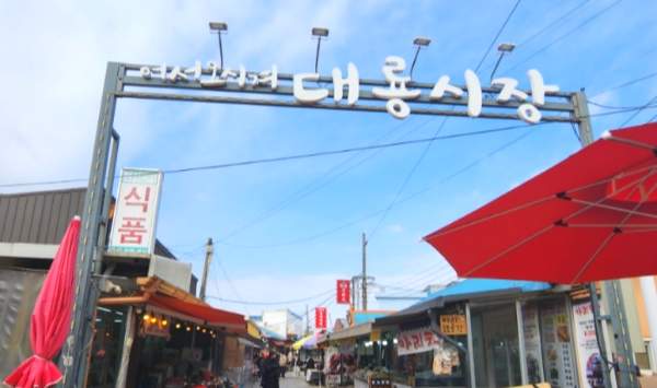 - 🔍 속노랑고구마·순무김치 등 특산물과 먹거리를 살 수 있는 전통시장.